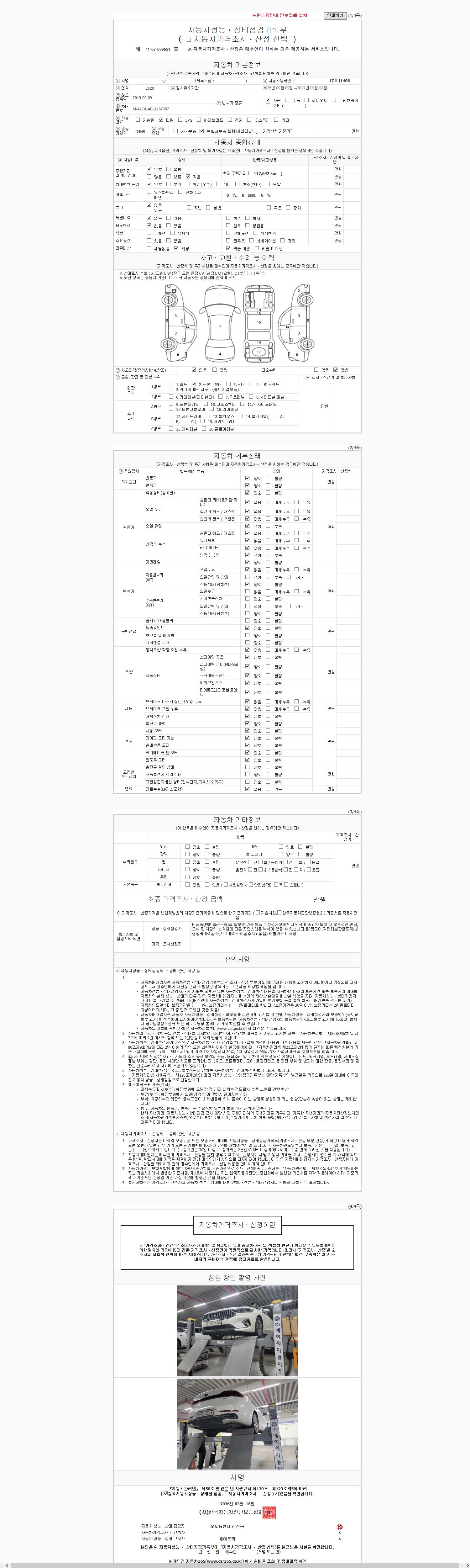 2. 차량 등록증이나 성능점검지 등을 상담자에게 요청및 확인하시고 사전에 미리 점검 하시기를 권유드립니다.