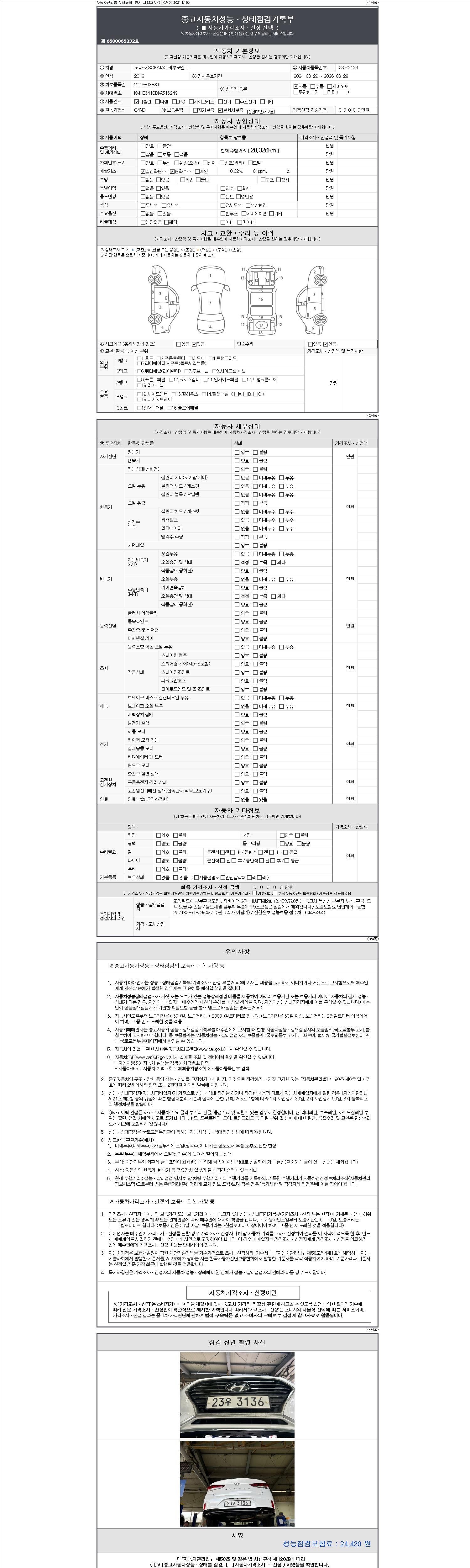 3. 차량의 이미지중 차량번호가 의도적으로 가공, 편집 된 경우나 지나치게 가격이 낮을 경우 더욱 세심한 주위를 요구합니다.
