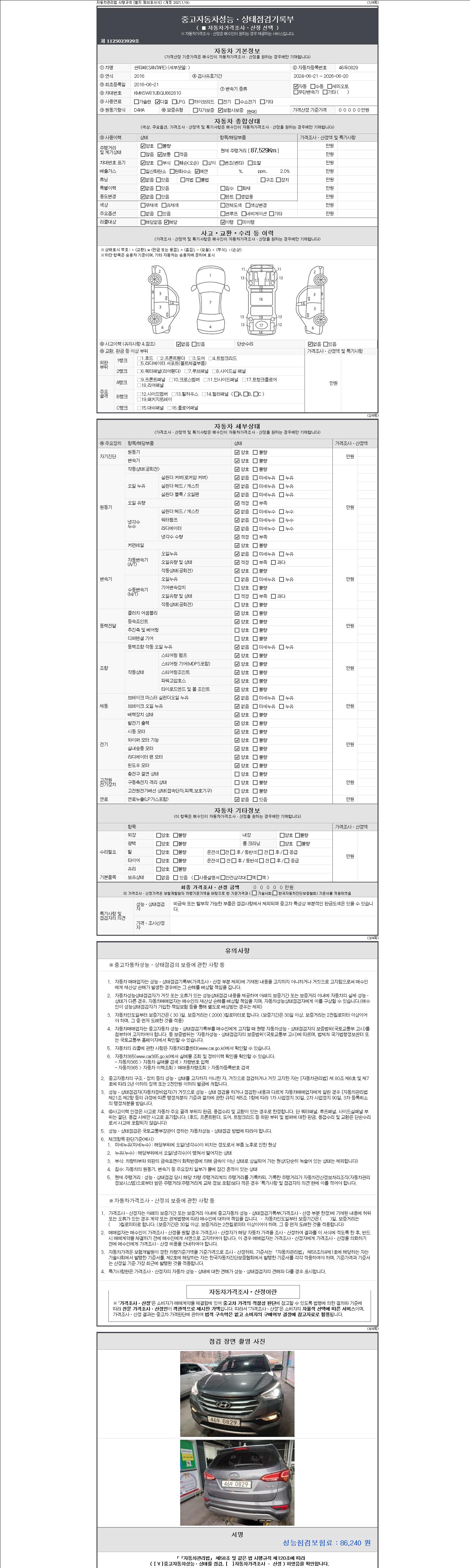 | 주행거리 | 87,529 km | 차량번호 | 46두0829 |