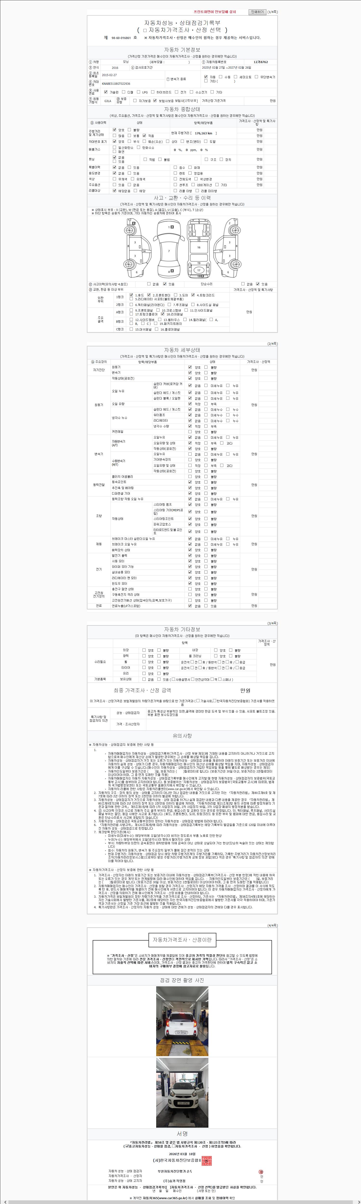사고유무 성능기록부 참조 제시번호 제 2026050194 호