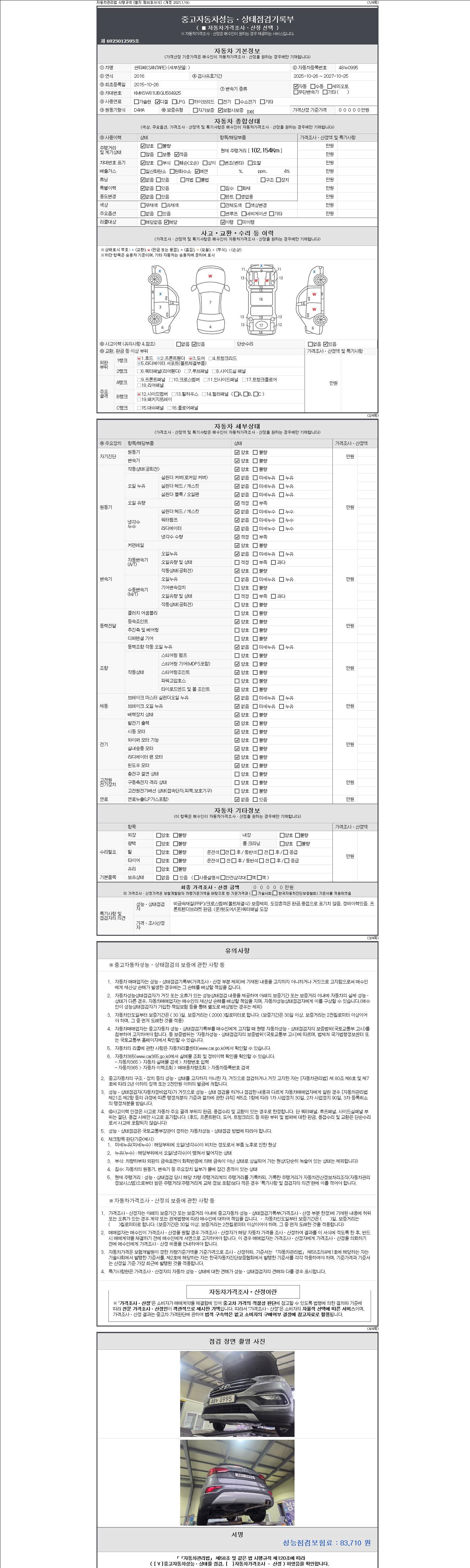-중고자동차 매매업자를 통해 차량을 구입하실 경우 반드시 "중고자동차 성능, 상태점검 기록부"를 교뷰 받으셔야 하며, 매매업자는 반드시 의무 교부 하여야 압니다.