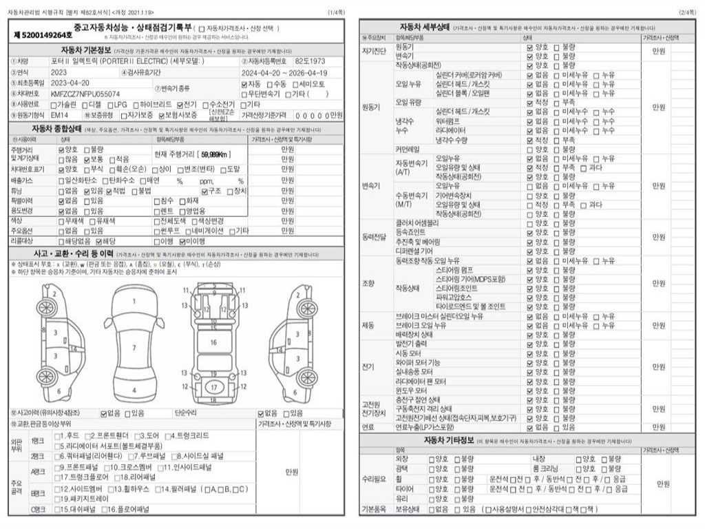 2. 차량 등록증이나 성능점검지 등을 상담자에게 요청및 확인하시고 사전에 미리 점검 하시기를 권유드립니다.