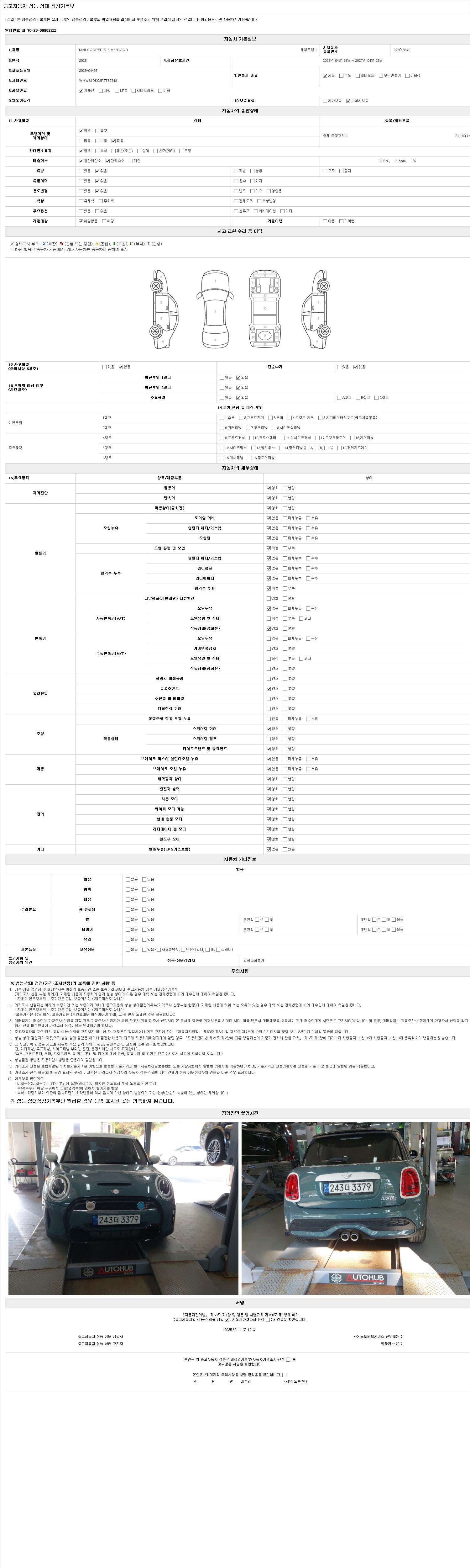 2. 차량 등록증이나 성능점검지 등을 상담자에게 요청및 확인하시고 사전에 미리 점검 하시기를 권유드립니다.