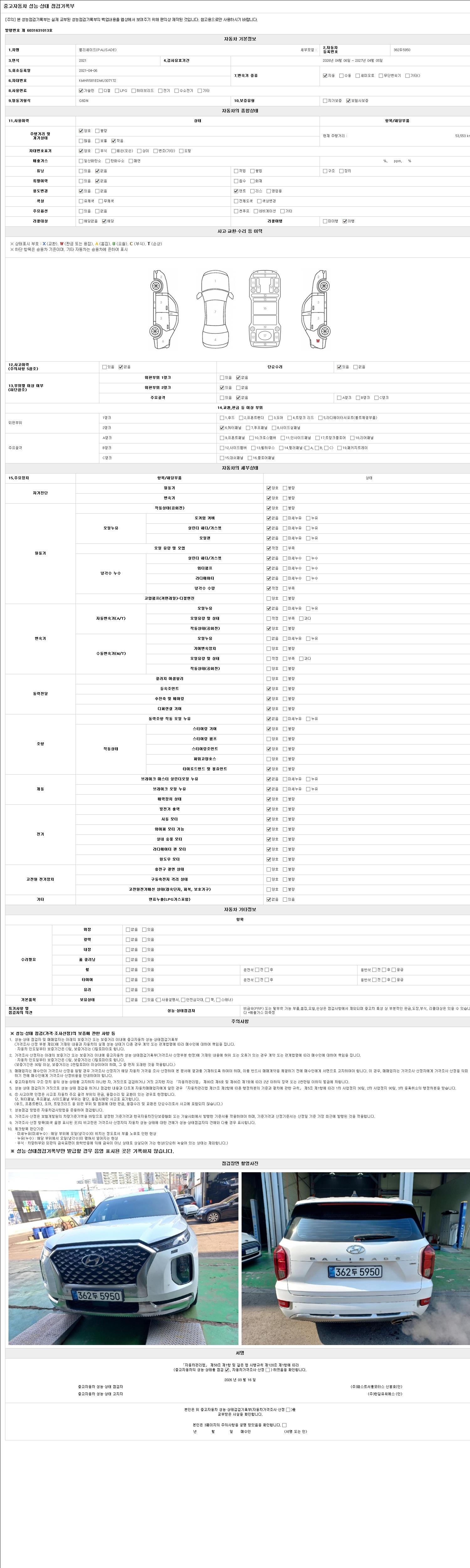 2. 차량 등록증이나 성능점검지 등을 상담자에게 요청및 확인하시고 사전에 미리 점검 하시기를 권유드립니다.