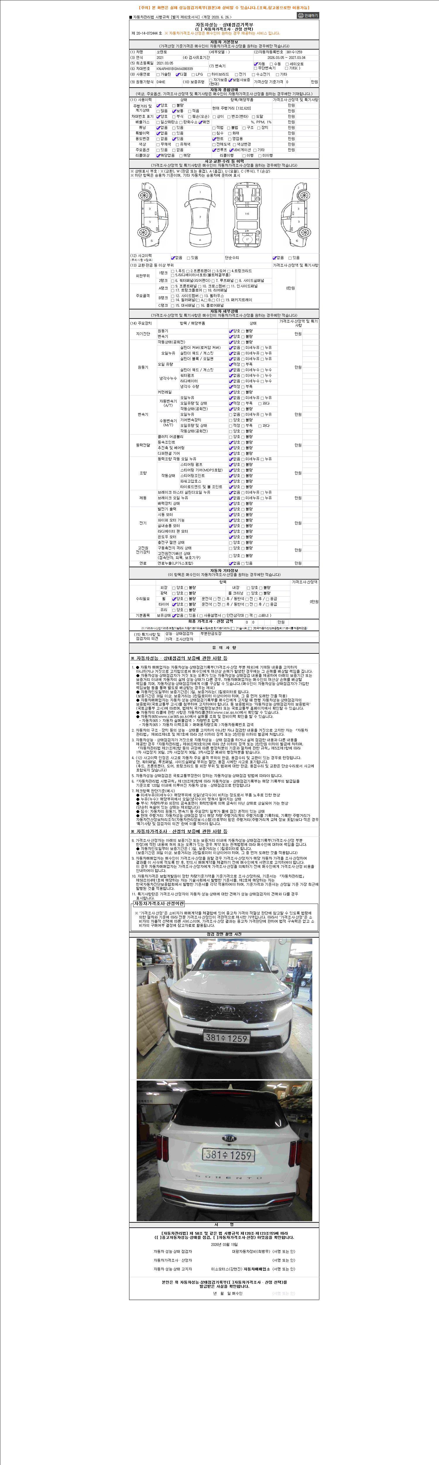 -중고자동차 매매업자를 통해 차량을 구입하실 경우 반드시 "중고자동차 성능, 상태점검 기록부"를 교뷰 받으셔야 하며, 매매업자는 반드시 의무 교부 하여야 압니다.