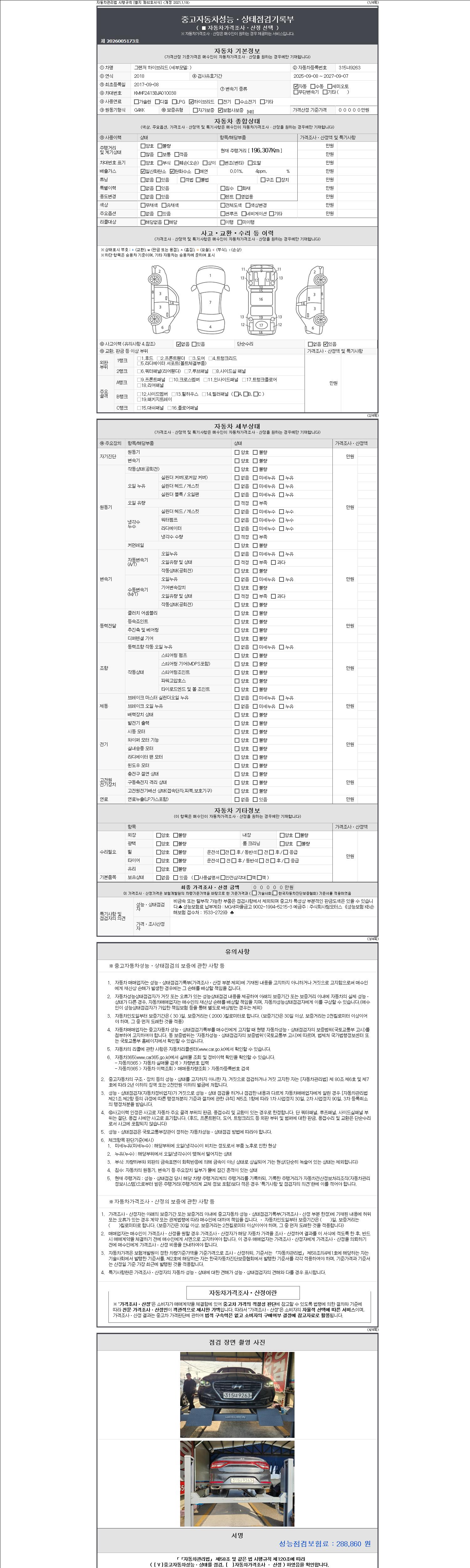 사고유무 성능기록부 참조 제시번호 제 2147483647 호