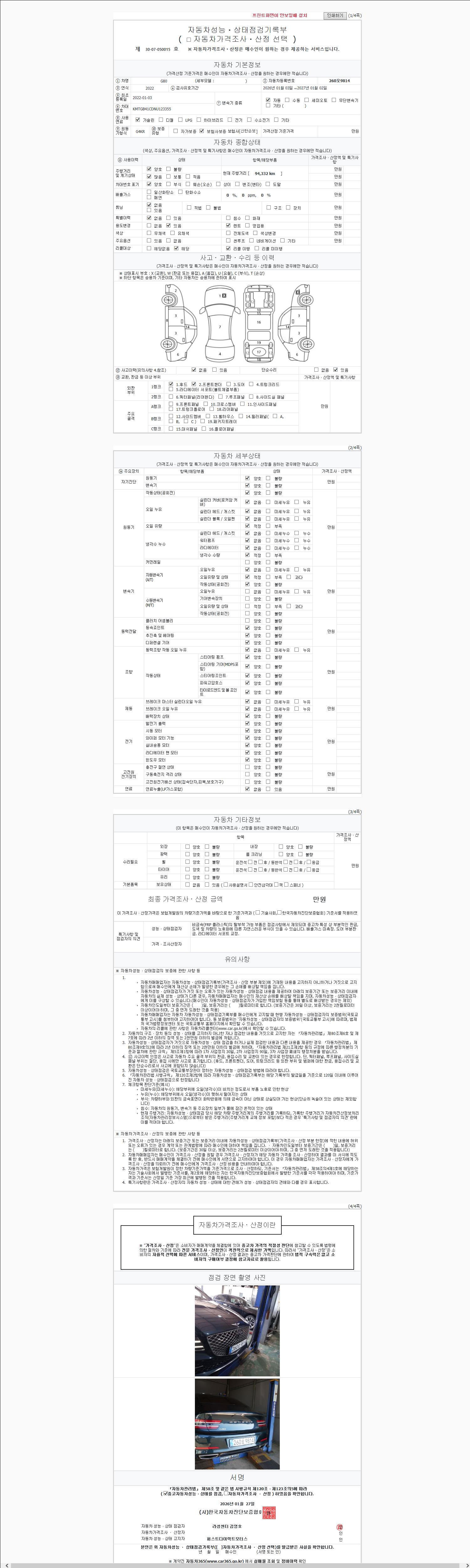- 사고유무 : 성능기록부 참조