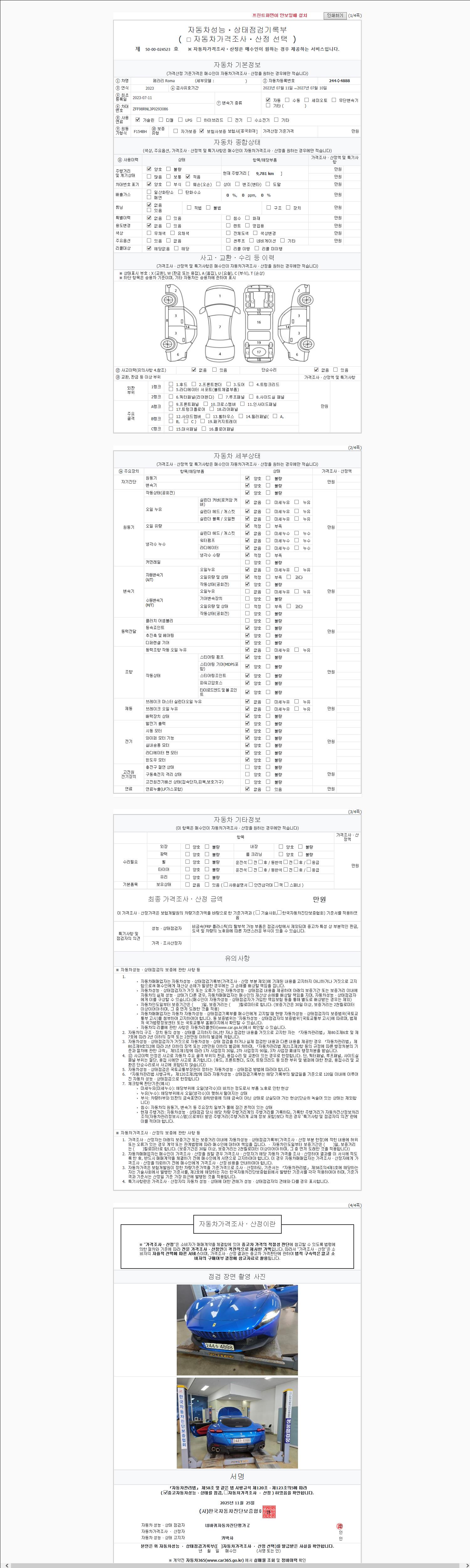 - 사고유무 : 성능기록부 참조